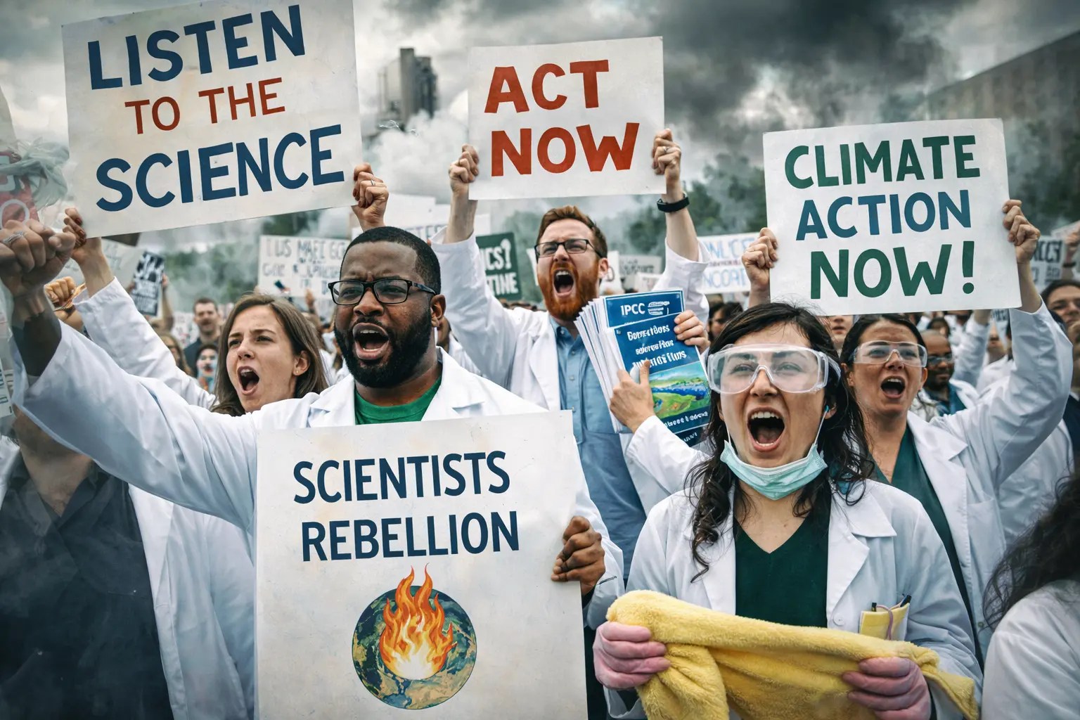 पिछले हफ्ते इंटरगवर्नमेंटल पैनल ऑन क्लाइमेट चेंज (आईपीसीसी) की भयावह रिपोर्ट जारी होने के बाद, 25 देशों के 1,000 से अधिक वैज्ञानिकों ने साइंटिस्ट रिबेलियन द्वारा आयोजित विरोध प्रदर्शनों में भाग लिया। रिपोर्ट चेतावनी देती है कि विनाशकारी जलवायु प्रभावों से बचने के लिए 2025 तक ग्रीनहाउस गैस उत्सर्जन में तेज और गहरी कटौती आवश्यक है।
