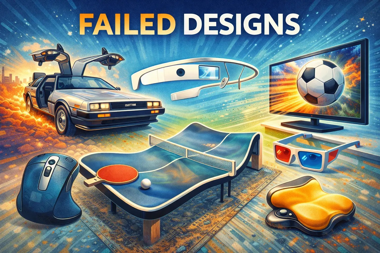 実生活で失敗した例として、Google Glass とバレエダンサーの足のアーチを保護することを目的としたローラースケートが展示されています。ヘッドアップディスプレイ付きのウェアラブルコンピュータである Google Glass は、プライバシーへの懸念と実用的な活用シーンの欠如により失敗に終わりました。一方、バレエ用ローラースケートは、ダンサーが使用するにはかさばりすぎて実用的でありませんでした。