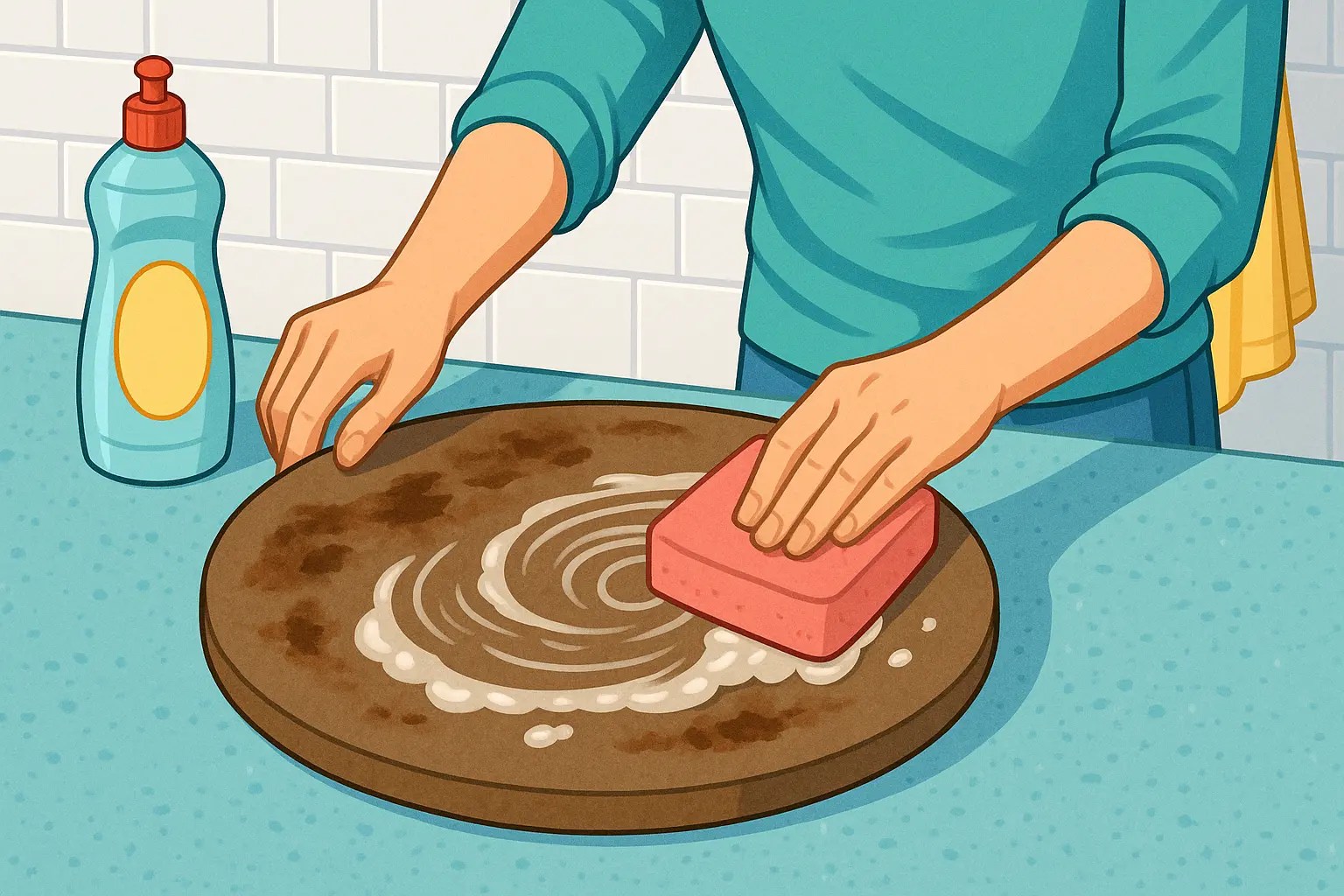 Remove Stains and Stubborn Food Residue: For stubborn food residue, create a paste of one tablespoon of baking soda and a few drops of water. Apply the paste to the affected areas and let it sit for 10 minutes. Use a nylon-bristled brush to gently scrub away the residue, then wipe down the stone with a damp microfiber cloth.